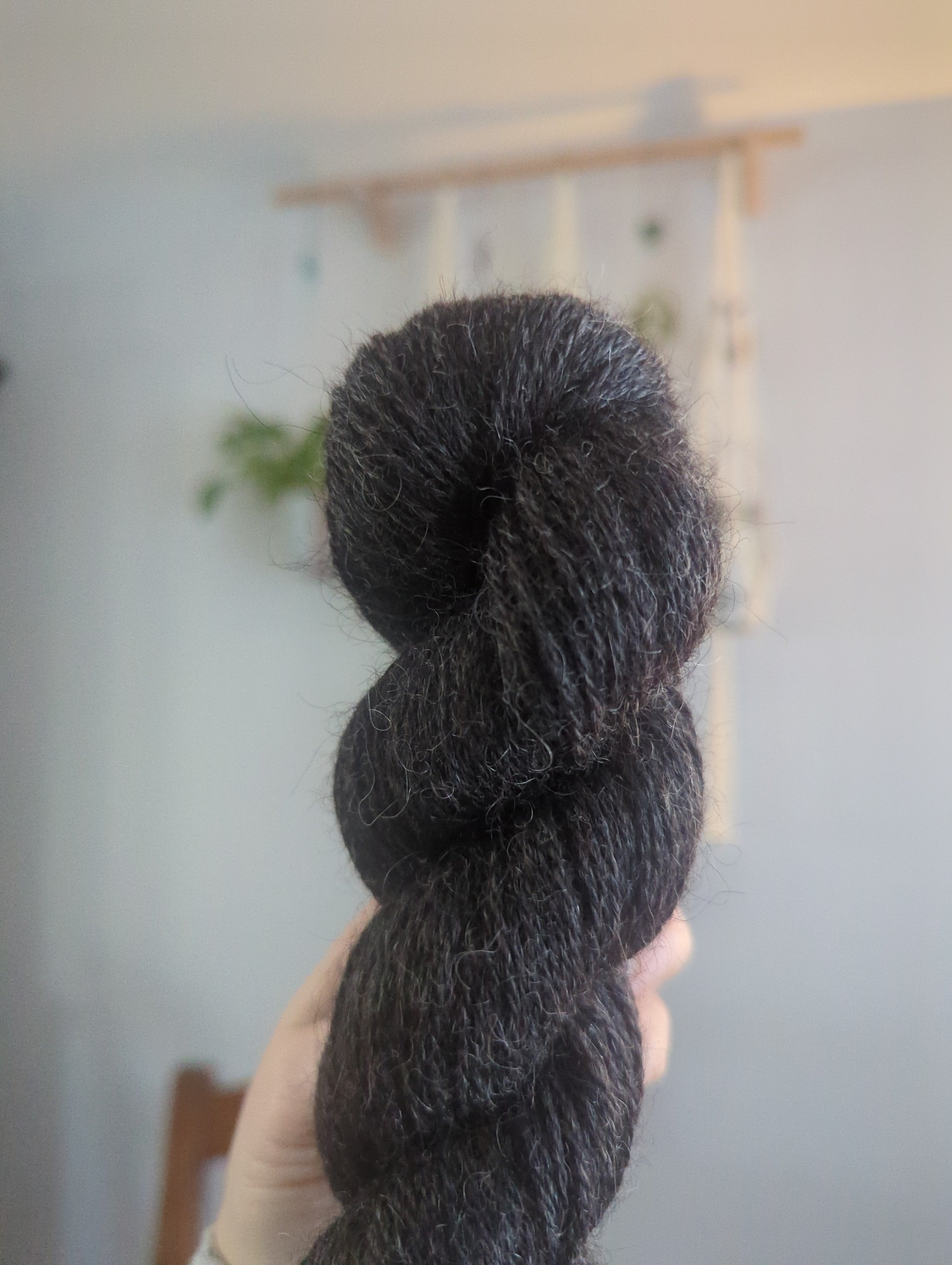 Fibre Content: Sheep names Roxy and friends. Black yarn with silver flecks